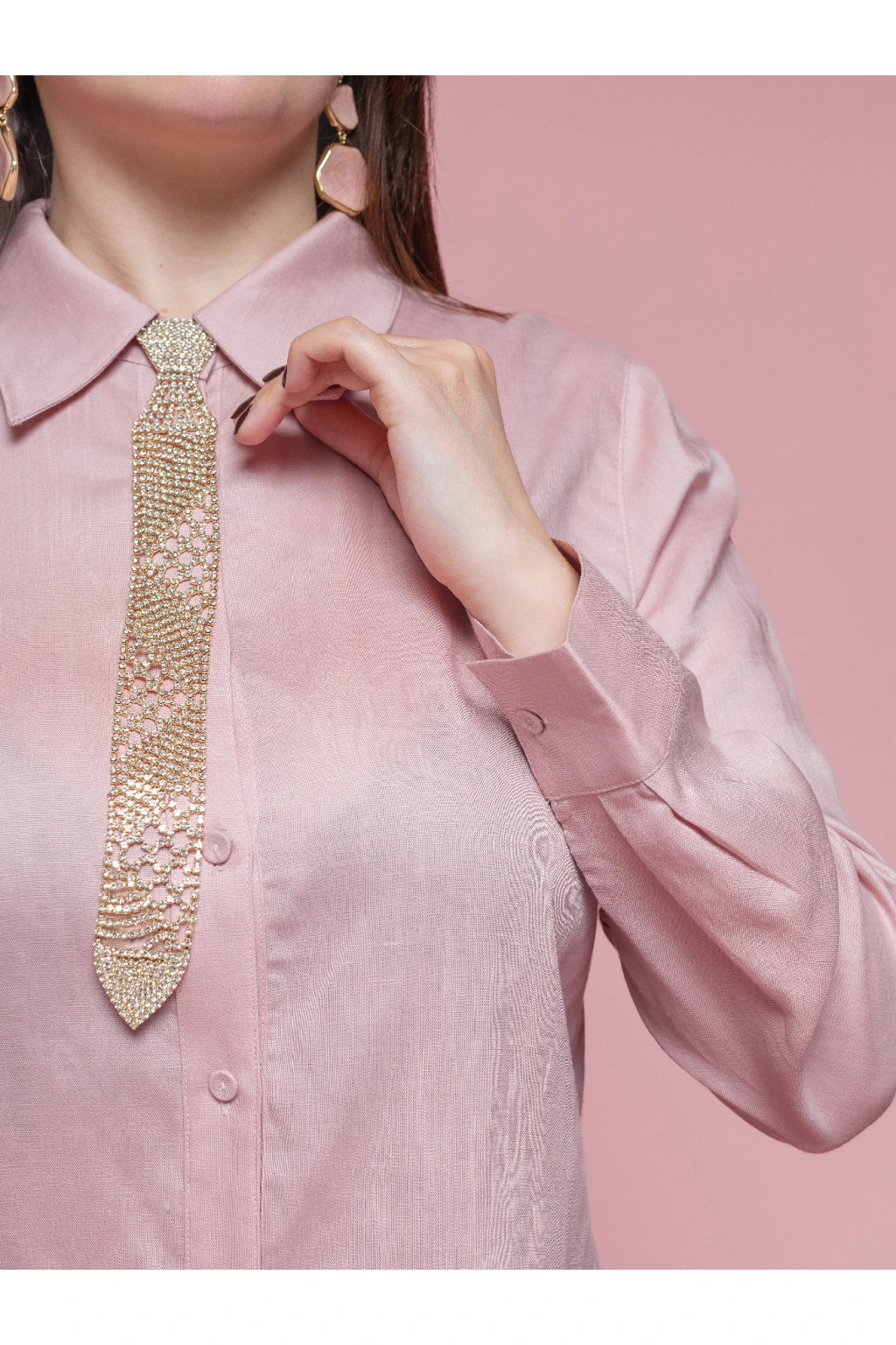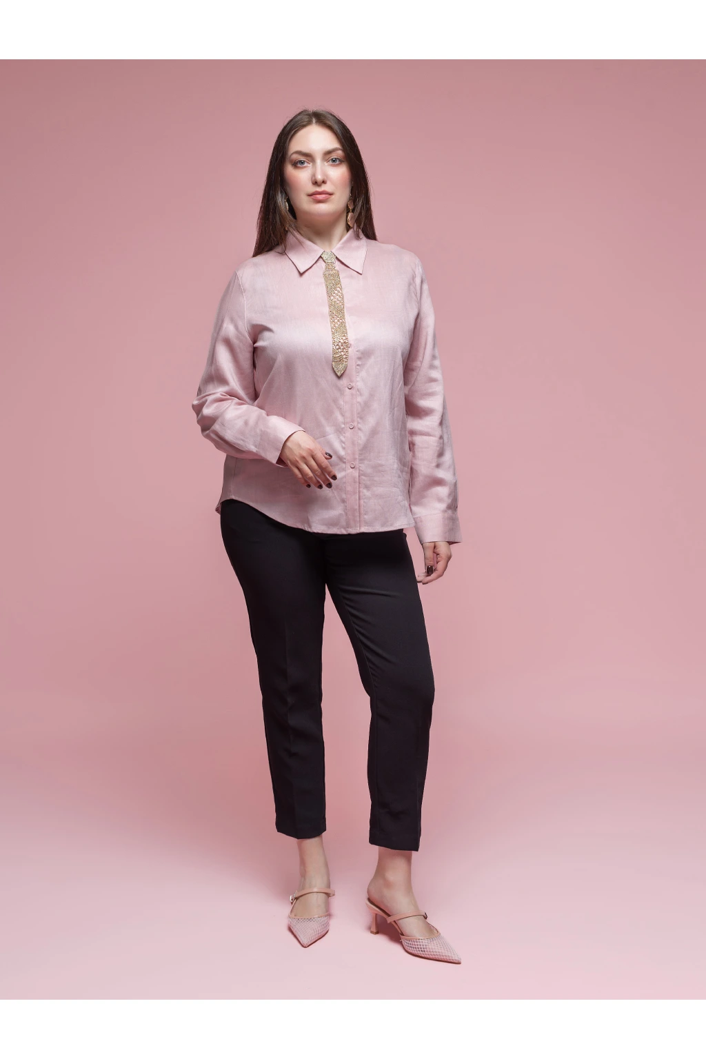 Světle růžová lněná košile s čistou siluetou.