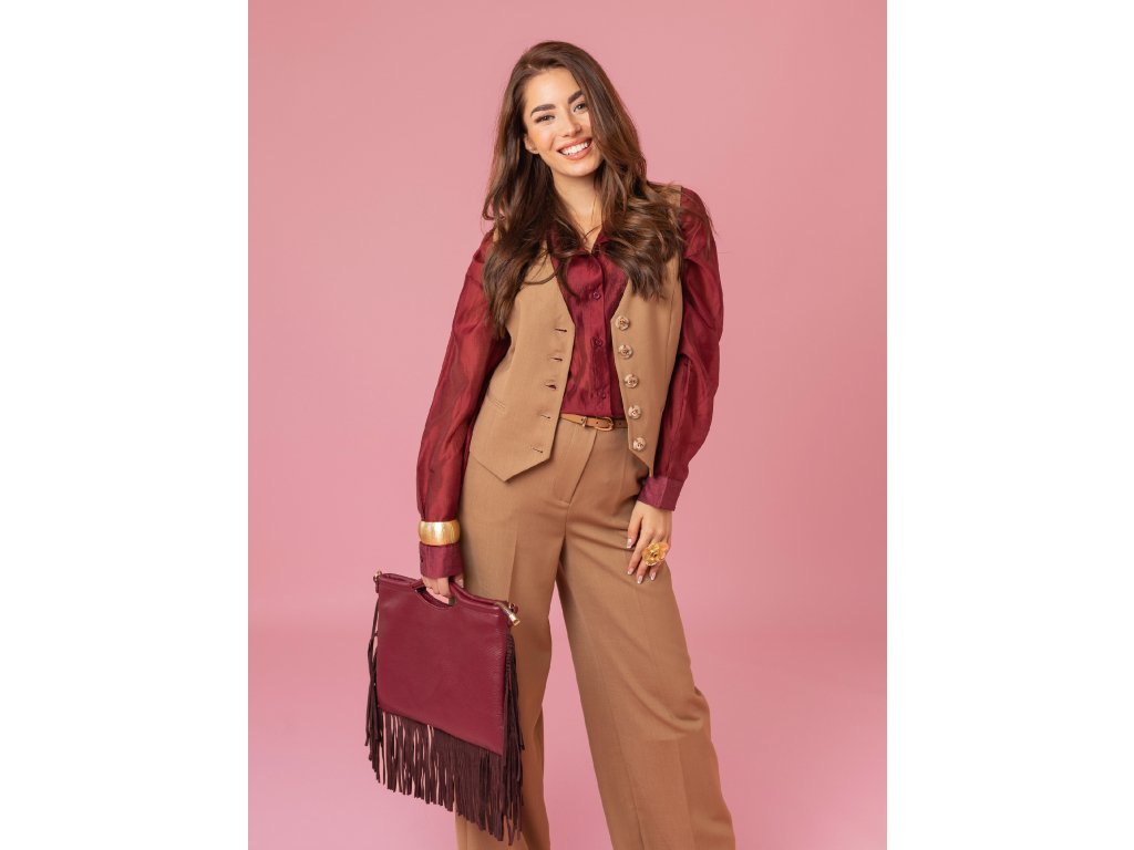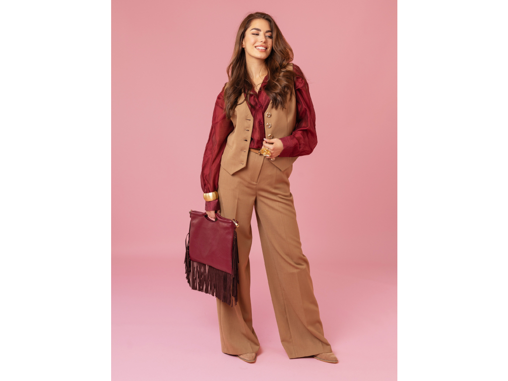 Kostým kalhoty vesta - camel