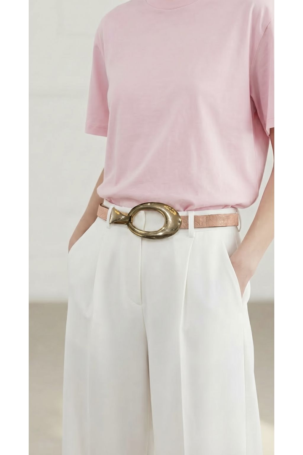 Šířka pásku je ideální pro nošení do kalhot i přes šaty nebo sako, kde krásně zvýrazní siluetu. Kovová spona přitahuje pozornost a dodává celkovému looku charakter.