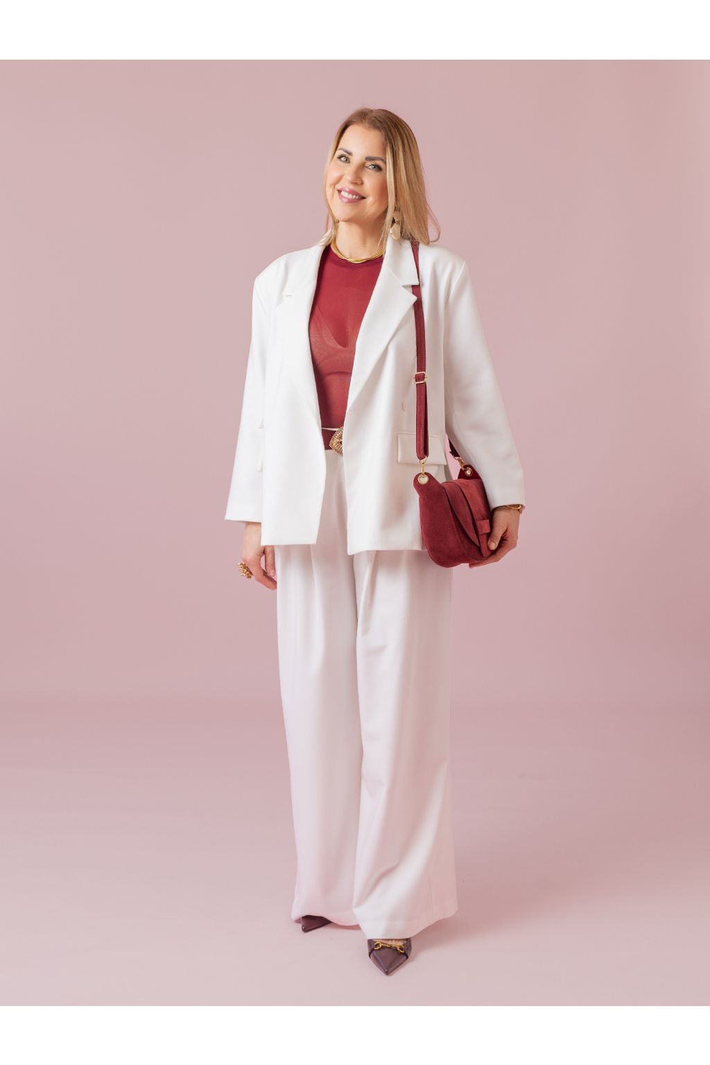 Klasické klopy dodávají modelu nadčasový charakter, zatímco moderní střih přináší lehkost a současný módní výraz. Sako je ideální pro ženy, které chtějí působit elegantně a zároveň přirozeně.