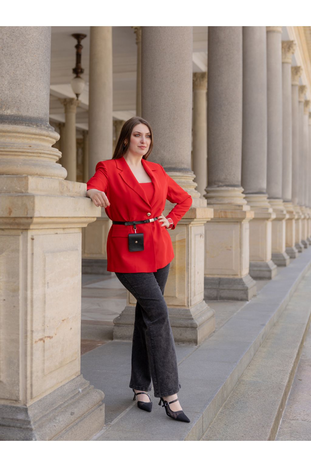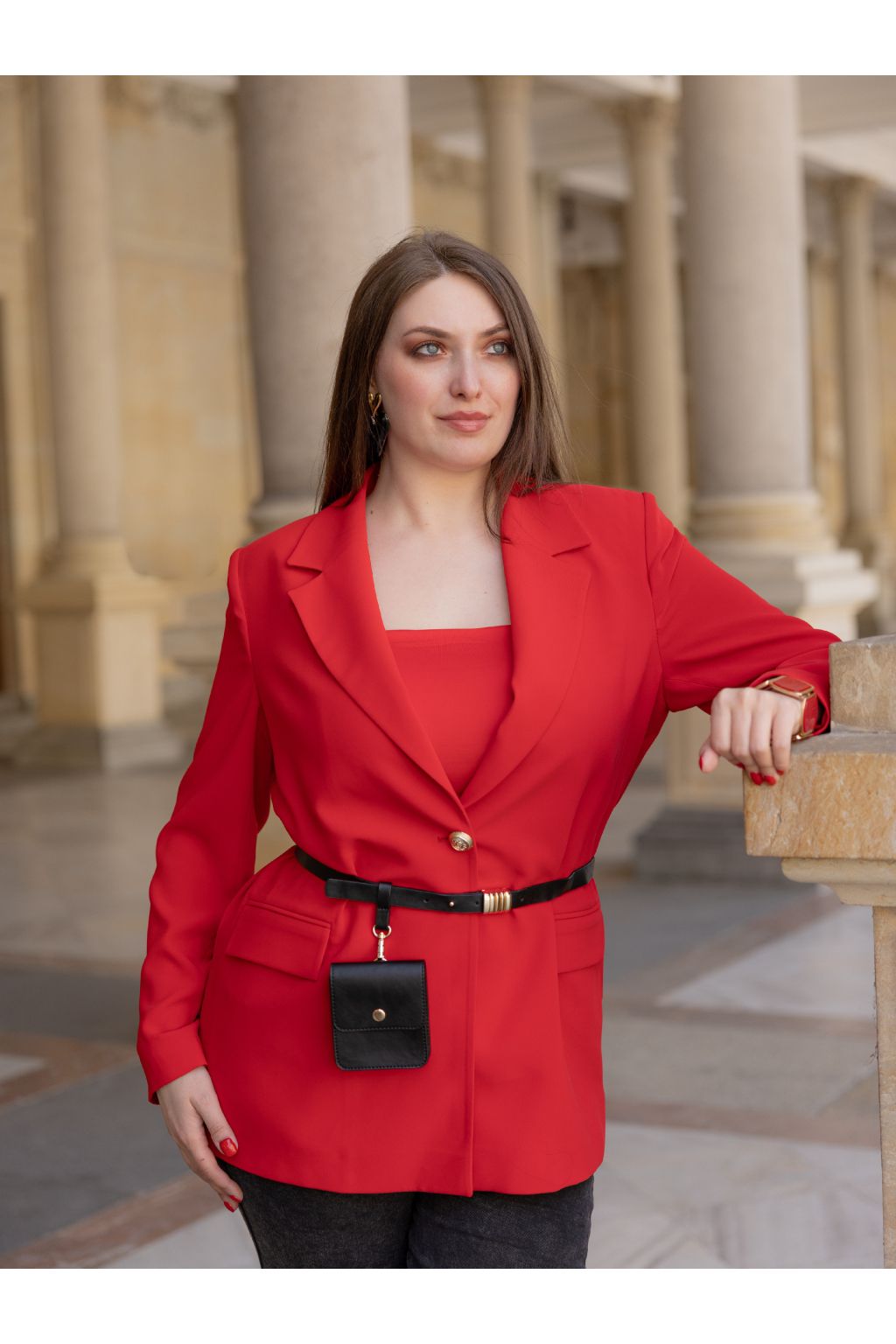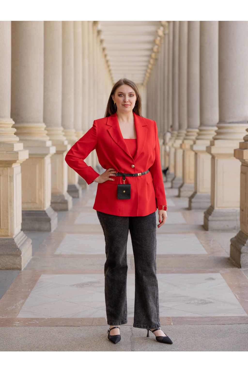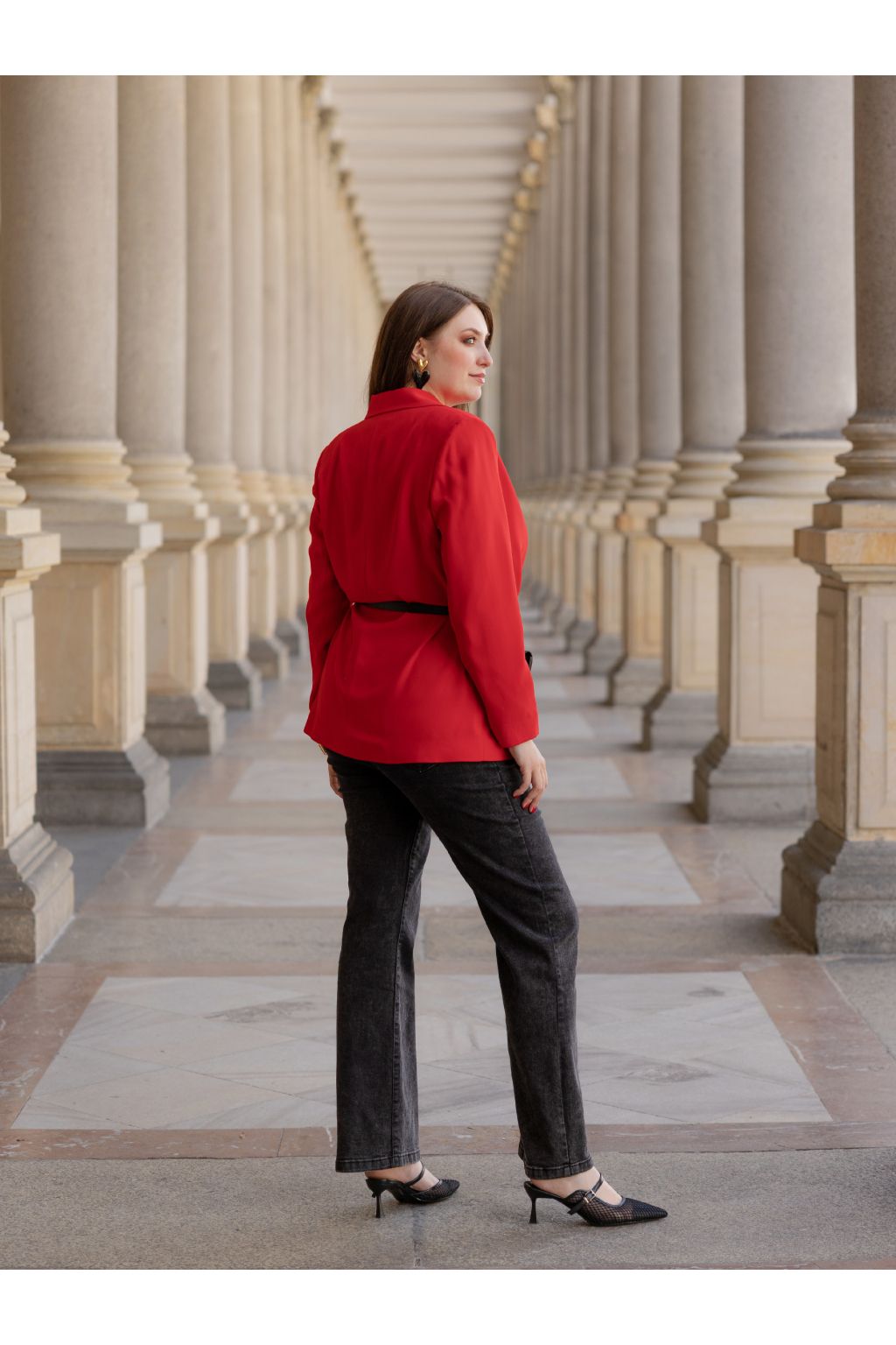 Tento model můžete nosit samostatně k džínům, kalhotám nebo sukni, ale i jako součást elegantního kostýmu. Červená barva dodává outfitu energii, šmrnc a moderní výraz.