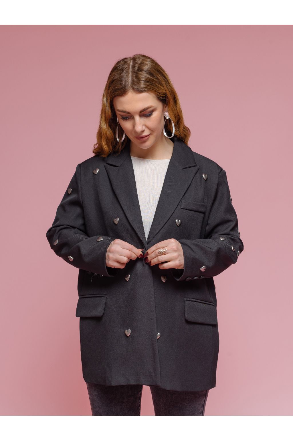 Elegantní dámské sako s jemnými kovovými srdíčky, které dodávají klasickému střihu hravý a ženský detail.