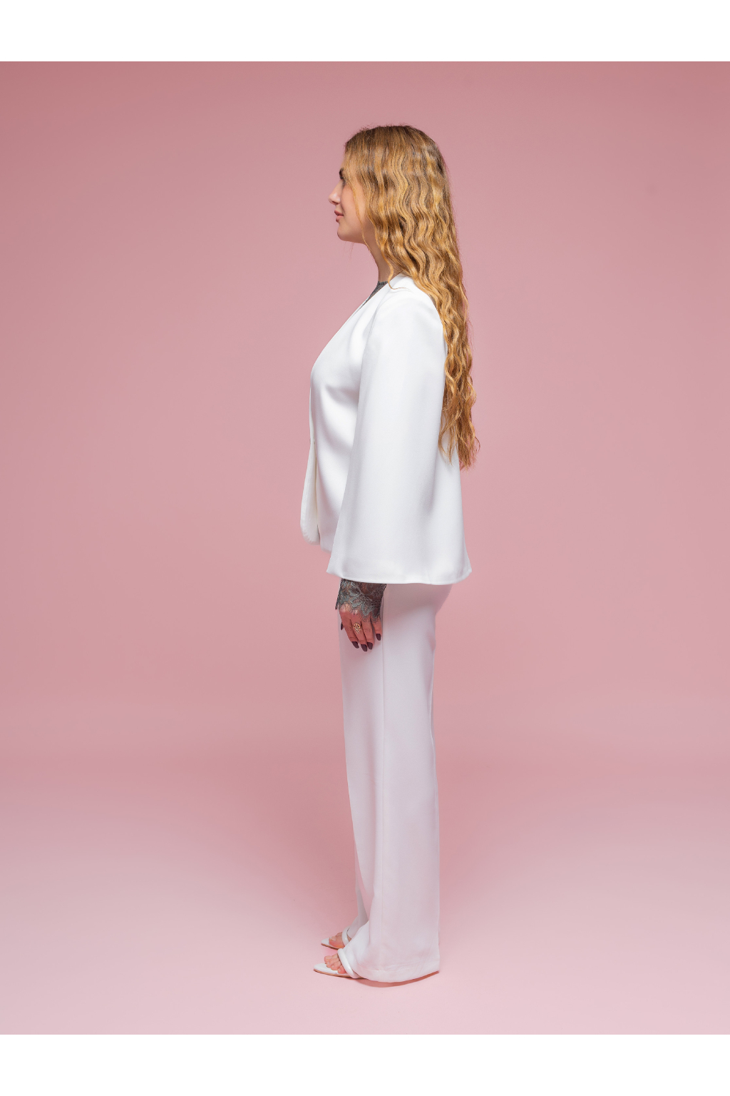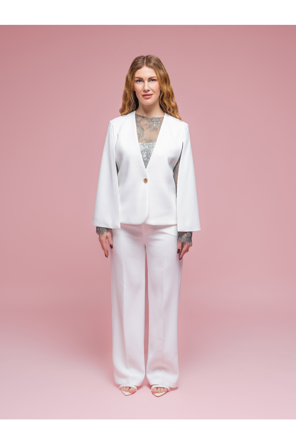 Minimalistická elegance s výrazným detailem. Krátké dámské sako MOTÝLEK zaujme především svým charakteristickým střihem rukávů, které jsou volné a tvarované do jemného „motýlího“ efektu. Právě tento detail dodává saku lehkost, originalitu a velmi ženský výraz.
